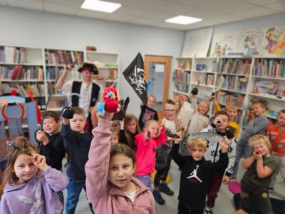 Dzieci przeniosły się w świat map skarbów, pirackich zagadek i morskich opowieści. Wspólnie odkrywały tajemnice ukryte w książkach, szukały wskazówek prowadzących do skarbu i z uśmiechem podejmowały kolejne wyzwania. Było dużo śmiechu, radości i emocji, a uczniowie mogli przekonać się, że biblioteka to miejsce pełne niezwykłych historii i magicznych przygód. Spotkanie zakończyło się odnalezieniem skarbu.