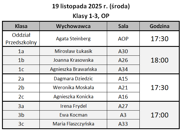 Informujemy, iż w dniach 19 oraz 20 listopada odbędą się śródroczne spotkania rodziców z wychowawcami.